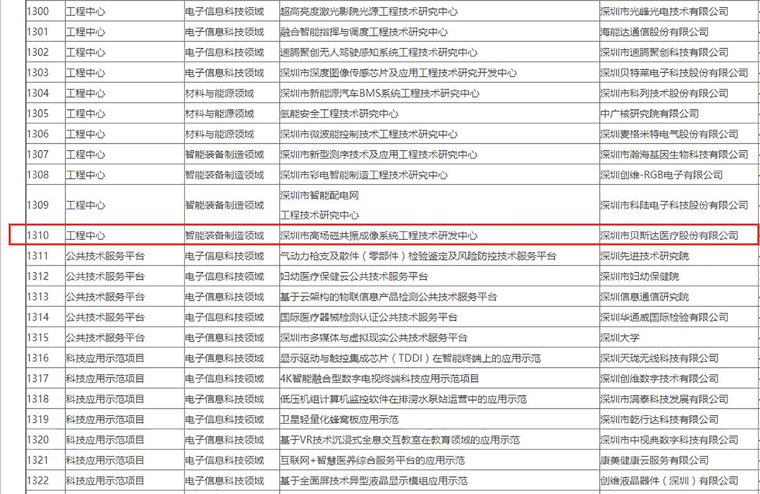 2018年8月,貝斯達(dá)獲深圳市科技創(chuàng)新委員會關(guān)于2019年第一批科技計(jì)劃擬資助項(xiàng)目“深圳市高場磁共振成像系統(tǒng)工程技術(shù)研發(fā)中心 ”認(rèn)定。