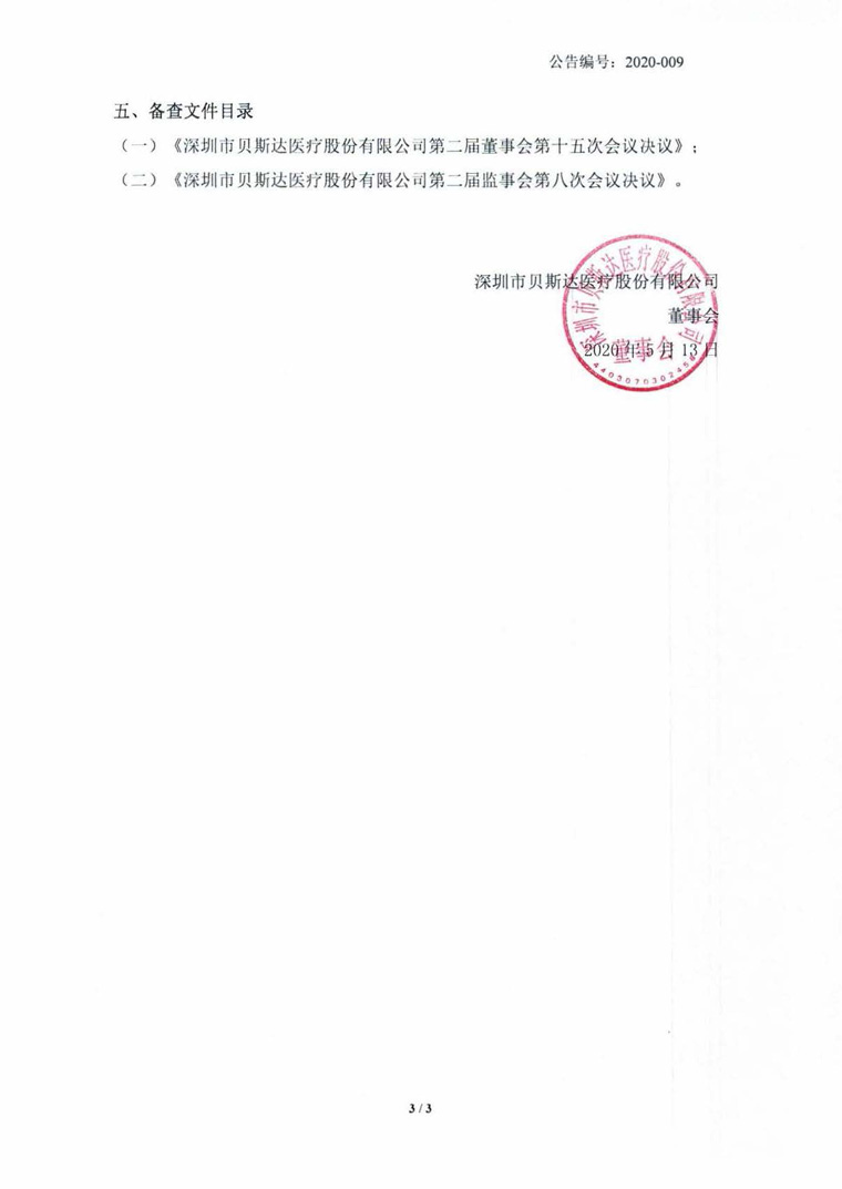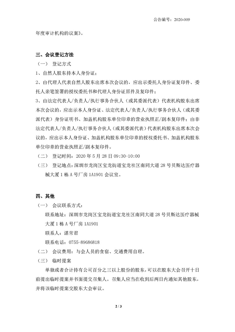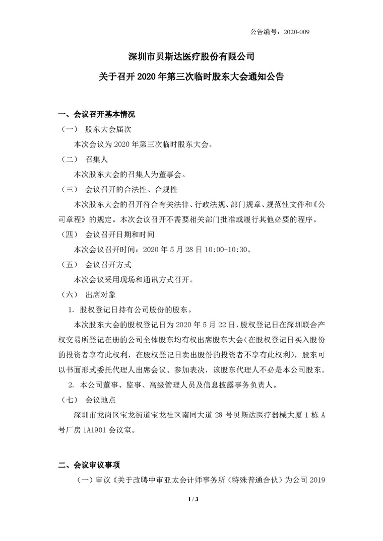 2020-009-貝斯達(dá)-關(guān)于召開2020年第三次臨時(shí)股東大會(huì)通知公告
