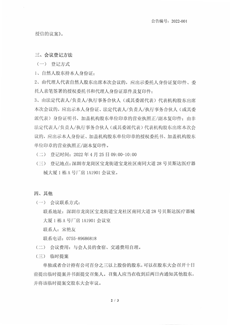 2022-002-貝斯達(dá)-2022年第一次臨時(shí)股東大會(huì)決議公告