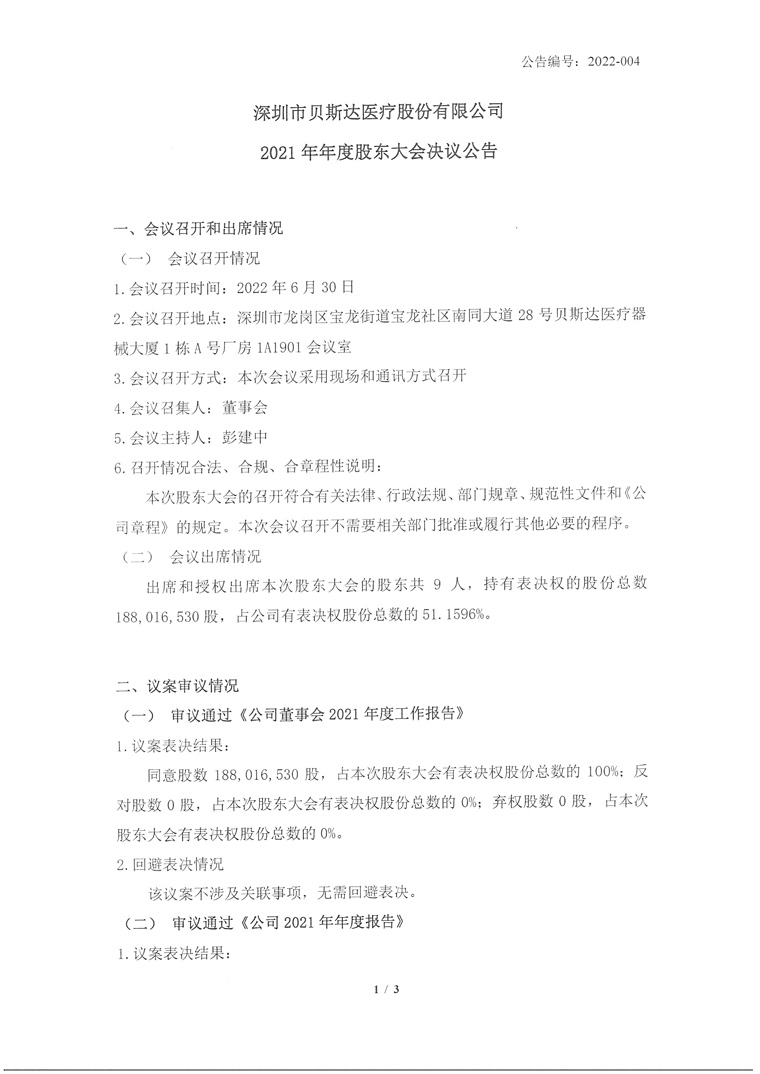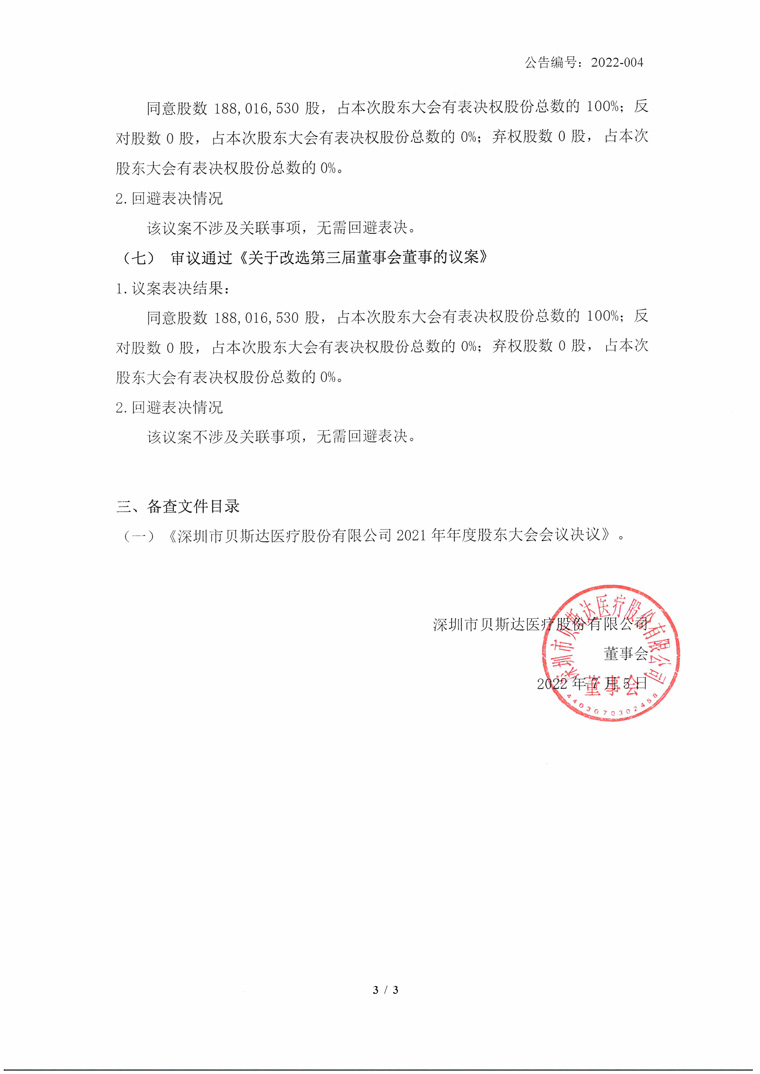 2022-004-貝斯達-2021年年度股東大會決議公告